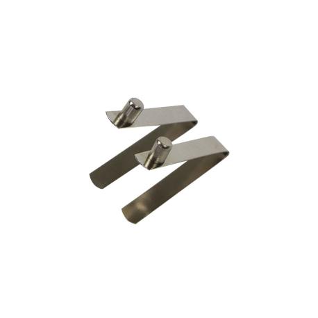 Een spanbeugelveer is een metalen veer die wordt gebruikt om bijvoorbeeld afvalzakken strak vast te zetten in een afvalzakhouder of een doek te spannen binnen een frame. De veer houdt de zak of het doek op zijn plek, zodat deze niet verschuift of inzakt tijdens gebruik.