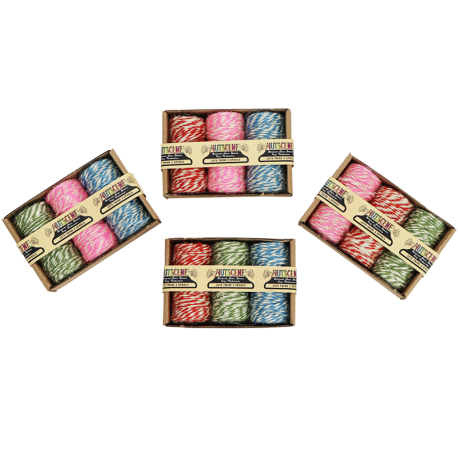 Lengte: 20 meter per spoelPrijs per: set á 3 stuksKleur: roze-wit/groen-wit/rood-wit